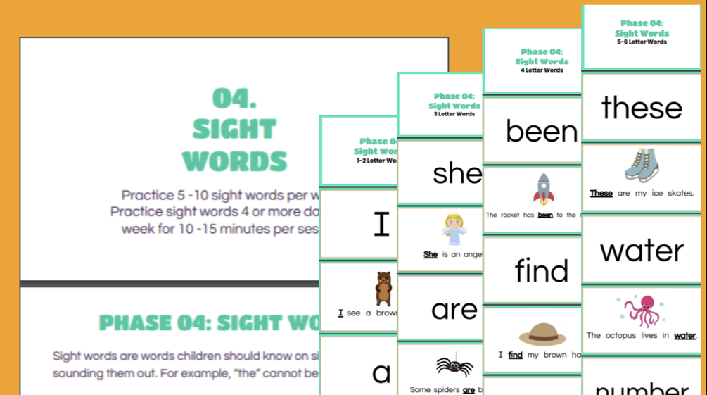 This digital file ONLY includes Phase 04 - Sight Words. This is the fourth phase of The 5 Phases of Teaching Reading Before Kindergarten.