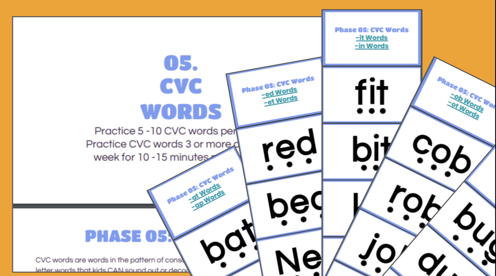 This digital file ONLY includes Phase 05 - CVC Words digital flashcards. This is the fifth phase of The 5 Phases of Teaching Reading Before Kindergarten.